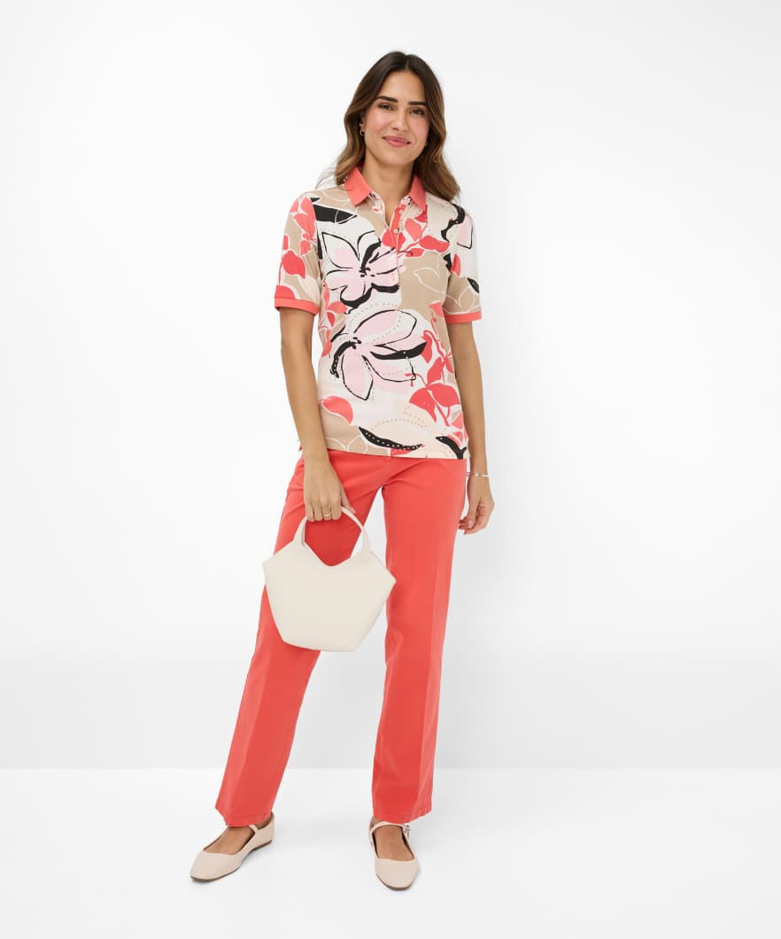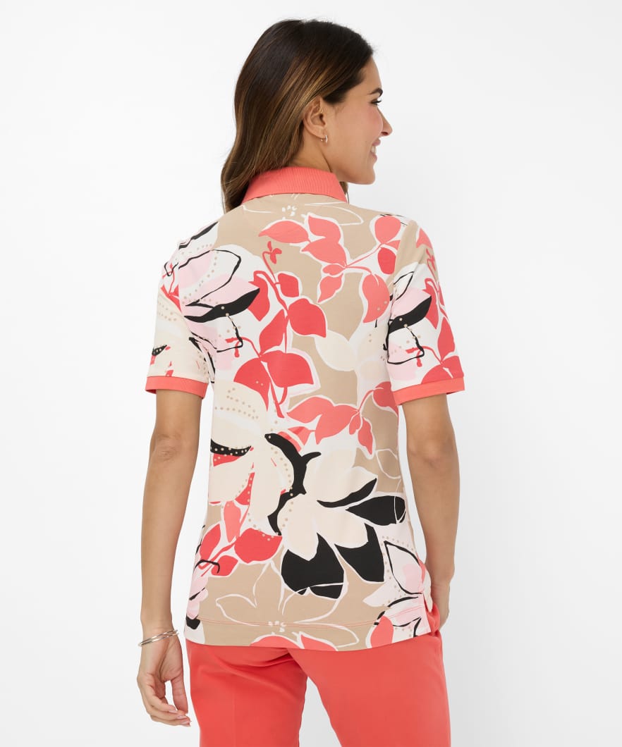 Der Style Cleo bringt frischen Frühlingszauber in Ihre Garderobe – ein Poloshirt, das mit femininer Eleganz und sportiver Lässigkeit überzeugt. Die leicht taillierte Silhouette schmeichelt der Figur, während die klassische Knopfleiste mit Polokragen eine zeitlose Note verleiht. Der florale Alloverprint setzt ein stilvolles Statement und verleiht dem Design eine moderne, verspielte Ausstrahlung. Hochwertig verarbeitet aus 97 % Baumwolle und 3 % Elasthan, bietet das Piqué-Gewebe nicht nur exzellenten Tragekomfort, sondern auch eine angenehme Elastizität. Zudem stammt die Baumwolle aus der Cotton made in Africa-Initiative – ein bewusster Schritt in Richtung nachhaltiger Mode.