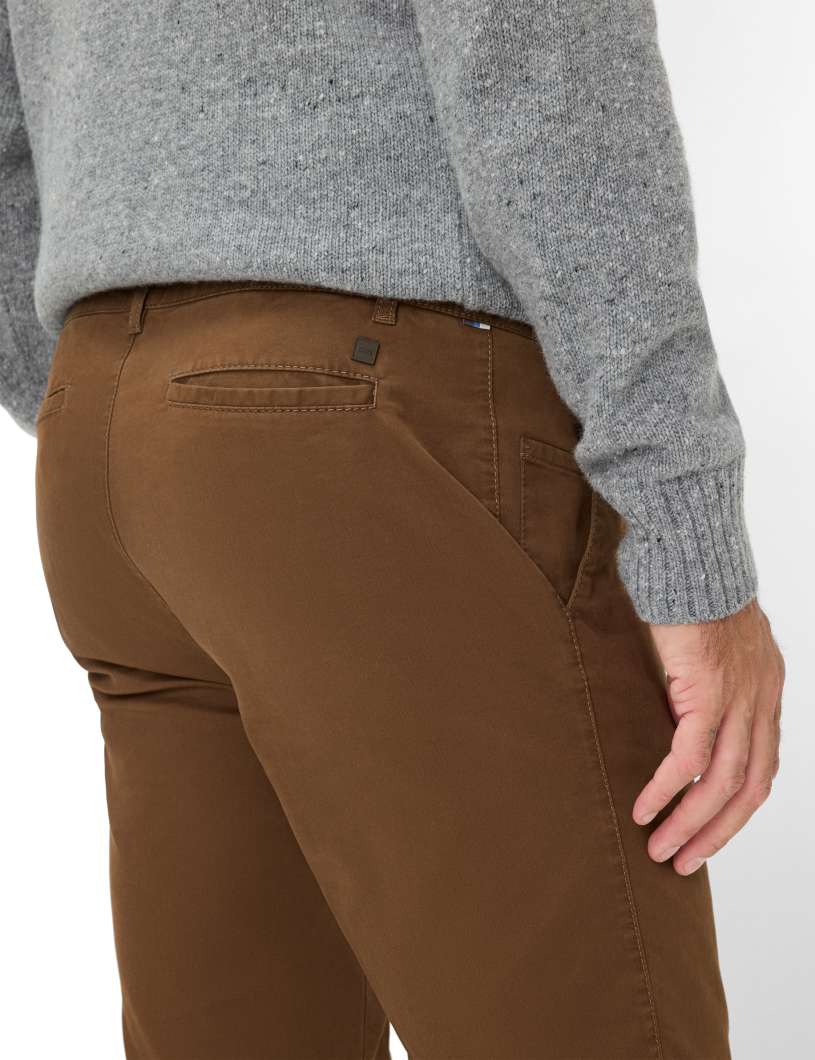 Souverän und trendbewusst präsentiert sich die Chino im Style PHIL für einen urbanen Herbstlook. Die gerade Form in Tapered Fit mit normaler Leibhöhe unterstreicht den zeitgemäßen Charakter der Hose, wobei besonders die verkürzte Schrittlänge für ein modisches Statement steht. Feine Details wie die flach gearbeiteten Leistentaschen, die französischen Eingrifftaschen und ein unauffällig partieller Gummibund runden das durchdachte Design ab. Optisch zurückhaltend, punktet die Herrenhose durch herbstliche Farbtöne und lässt sich vielseitig kombinieren – von sportiv bis smart-casual. Die Grundlage bildet ein hochwertiger Baumwollmix, der mit seinem natürlichen Griff, angenehmer Hautfreundlichkeit und formstabiler Qualität überzeugt. Elastische Fasern sorgen für ein Plus an Bewegungsfreiheit, das den Tragekomfort zusätzlich steigert. Die Techino-Qualität bringt pflegeleichte Eigenschaften und Langlebigkeit mit, ohne auf eine moderne Optik zu verzichten – eine smarte Lösung.