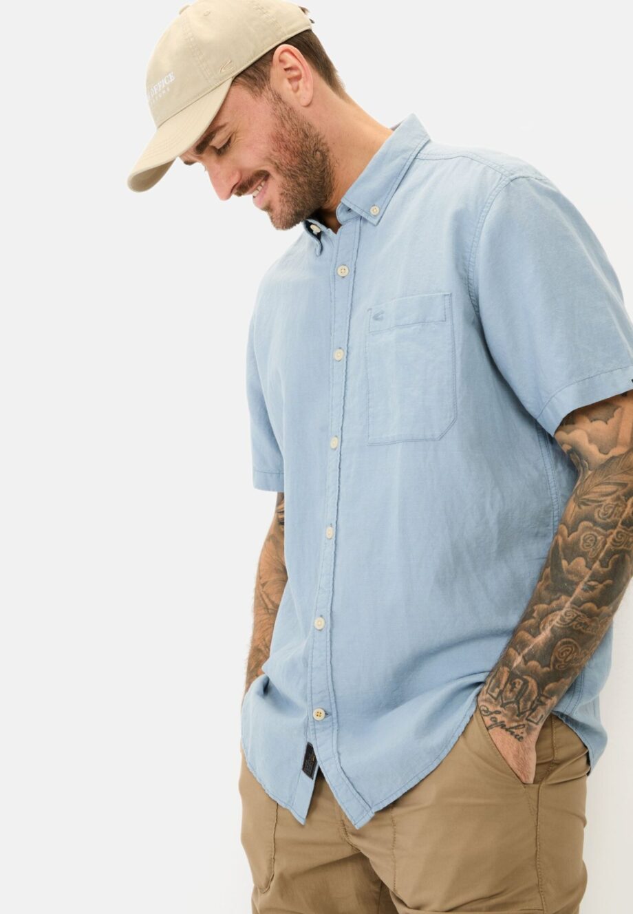 Der Mix aus Leinen und Baumwolle sorgt für ein angenehmes Tragegefühl – gerade wenn’s wärmer wird. Dank Soft-Wash ist der Stoff besonders weich, und der Schnitt in Regular Fit sitzt bequem. Mit dem klassischen Button-Down-Kragen und der Brusttasche bist du auch optisch gut aufgestellt. Ob für den Alltag oder unterwegs – das Hemd passt locker rein.