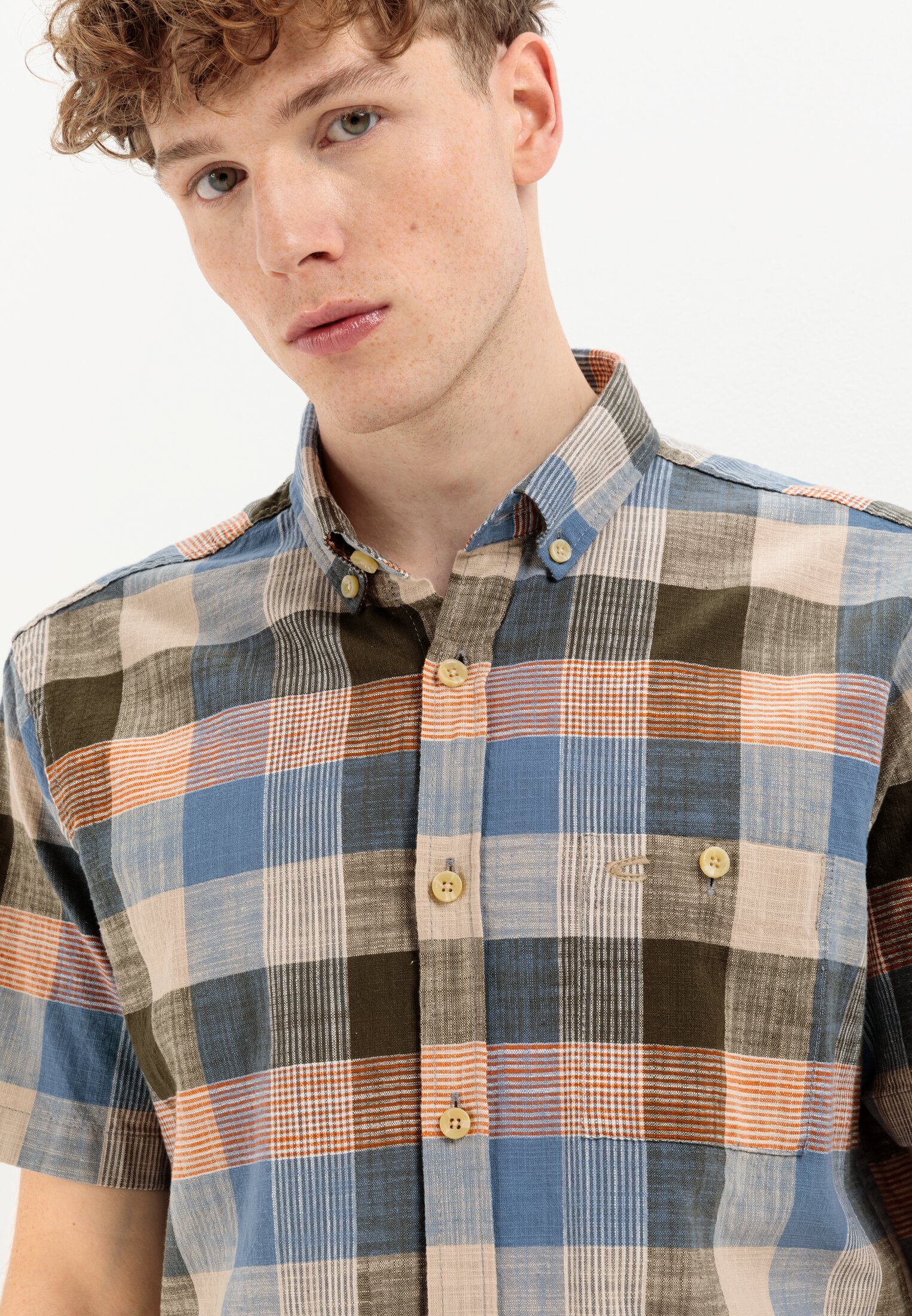 Dieses bequeme Hemd aus reiner Baumwolle passt zu Jeans, Chino oder Shorts. Der natürliche Textilstoff lässt die Haut atmen und nimmt Flüssigkeit auf – ideal für deinen aktiven Lebensstil. Für zusätzlichen Komfort und ausreichend Bewegungsspielraum sorgt die entspannte Passform im Regular Fit. Das kurzärmlige Hemd ist mit einem klassischen Button-down-Kragen und Knöpfen in Hornoptik ausgestattet. Mit camel active Logostickerei auf der Brusttasche.