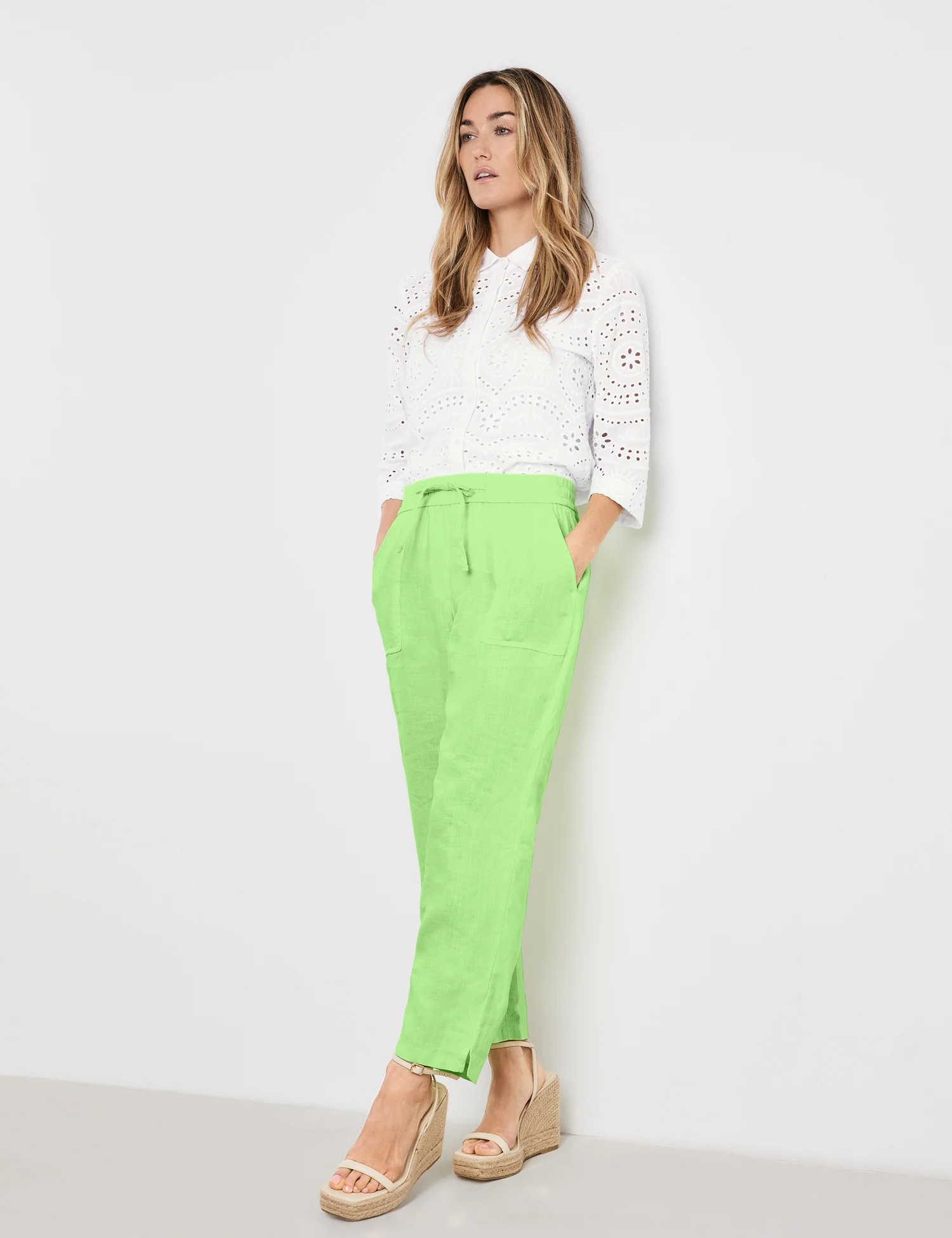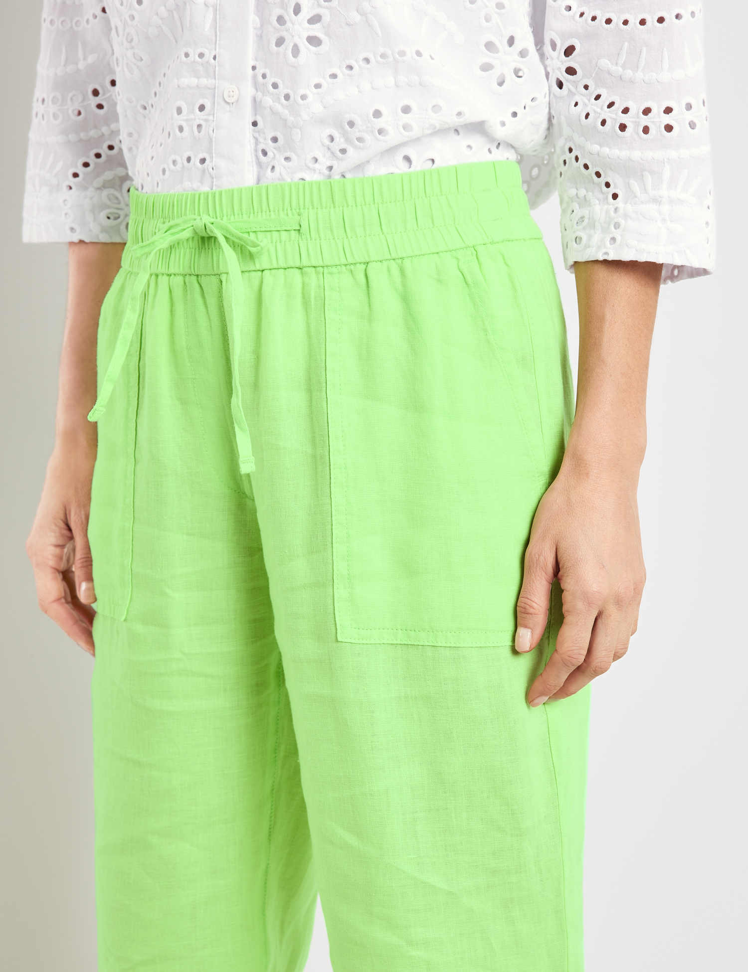 Stylischer Komfort: Mit der 7/8 Hose haben Sie jederzeit ein modisches Lieblingsteil im Kleiderschrank. Das reine Leinen punktet mit einem luftig, leichten Tragefeeling. Smarte Design-Details, wie etwa aufgesetzte Taschen, vervollständigen den Gesamteindruck. Die ansprechende 7/8 Hose mit bequemem Schnitt kann vielseitig kombiniert werden und wird Sie stilvoll begleiten.