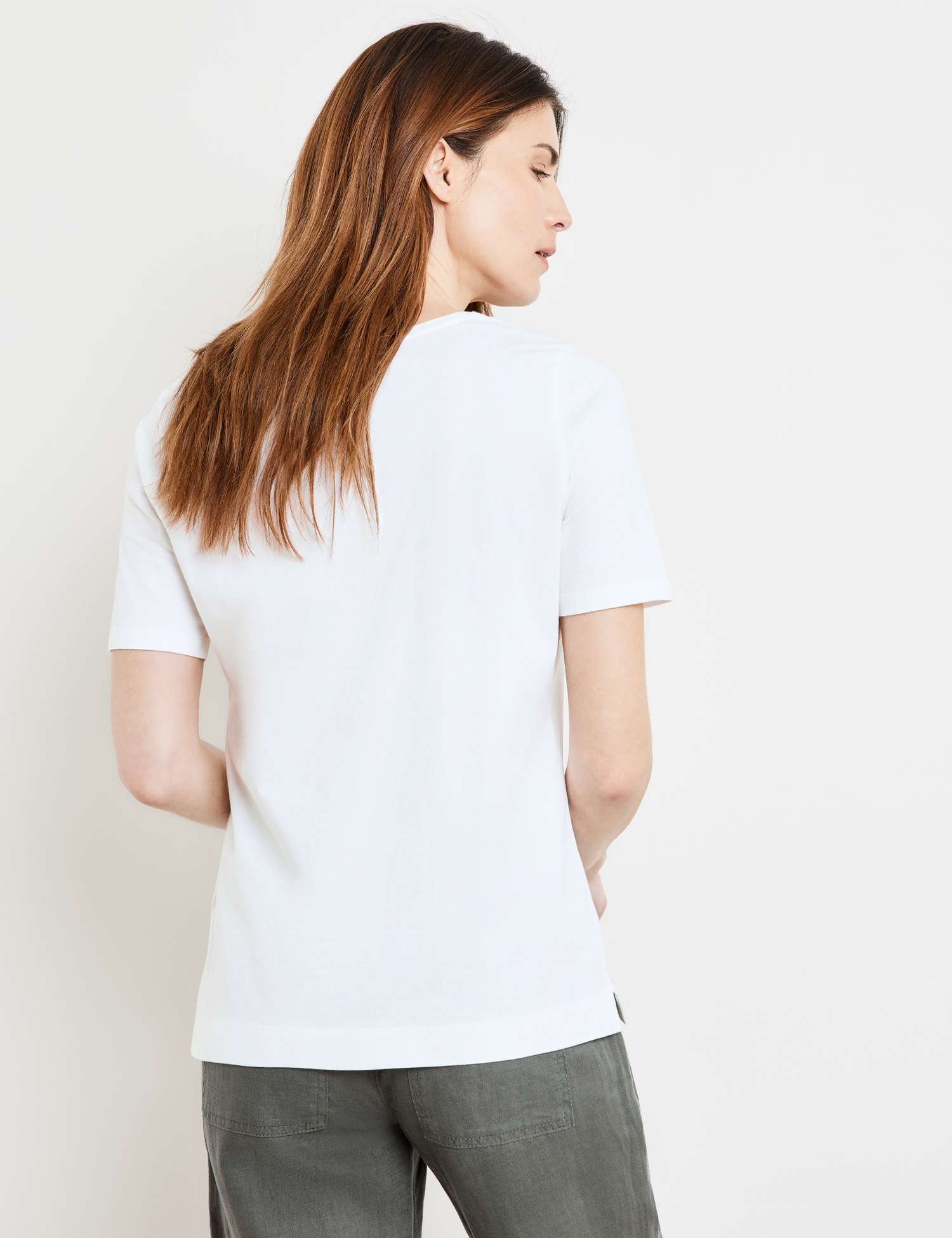 Gekonnt gestyled: Mit dem figurumspielenden T-Shirt aus nachhaltiger Baumwolle haben Sie viele Kombinationsmöglichkeiten. Das hautfreundliche, softe Material punktet mit einem angenehmen Tragegefühl. Seitliche Saumschlitze und ein gerader Schnitt vervollständigen das Basic Shirt.