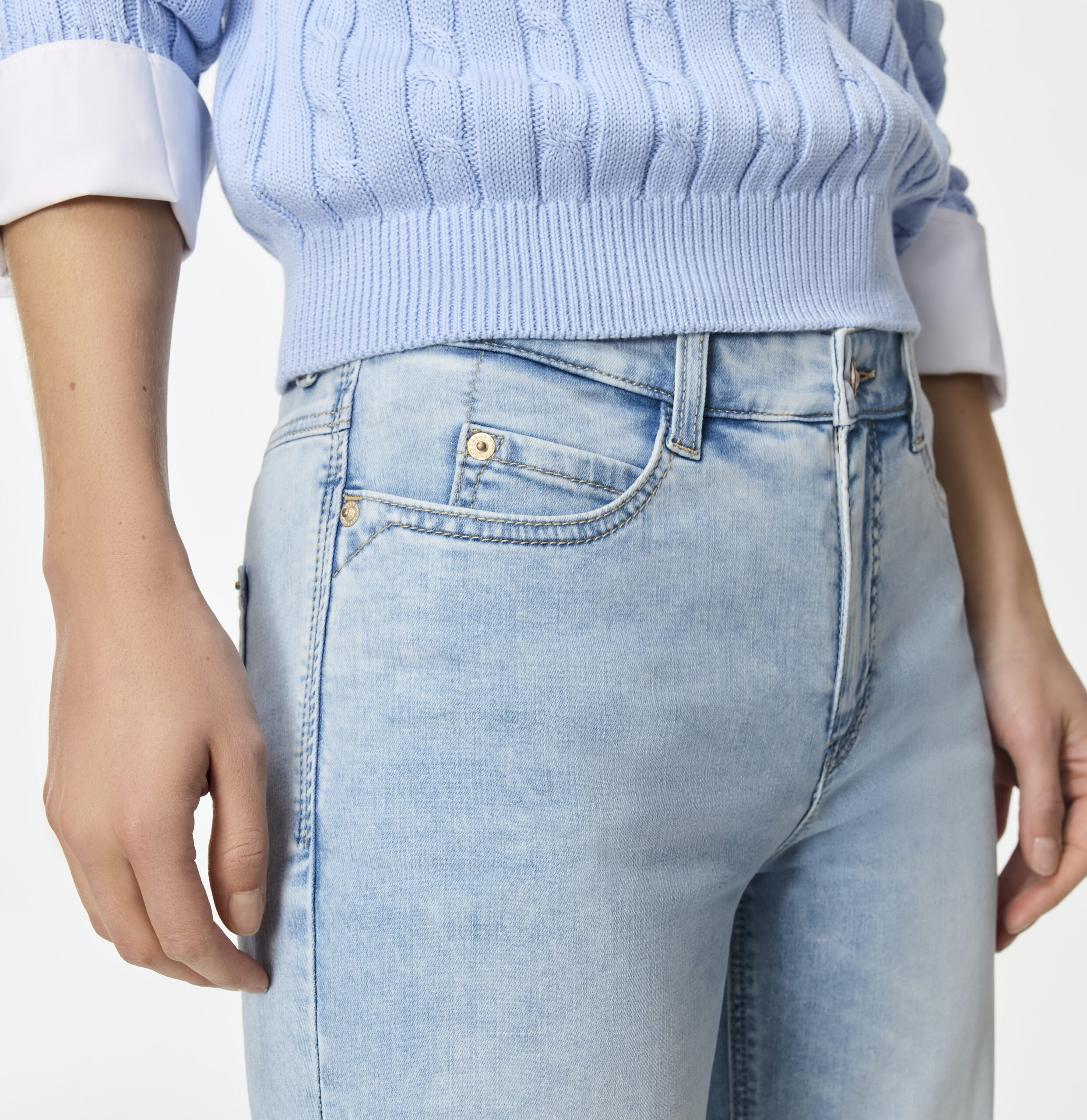 Wide Fit, Wide Leg, weites, gerades Bein, mittlere Leibhöhe, bequeme Taille, bequem an Gesäß und Oberschenkel, DREAM Wonder Light Denim, innovative, hochelastische Denim-Qualität mit Modal, sehr leicht im Tragegefühl, besonders weich im Griff, authentische Optik, figurformender Shaping-Effekt, hervorragendes Rücksprung-Verhalten, über Better Cotton gesourcte Baumwolle, Das Model ist 1,75m groß und trägt die MAC Hosengröße 34, Fußweite bei Größe 36: 52cm, Unsere Empfehlung: Das Modell eine Größe kleiner wählen!