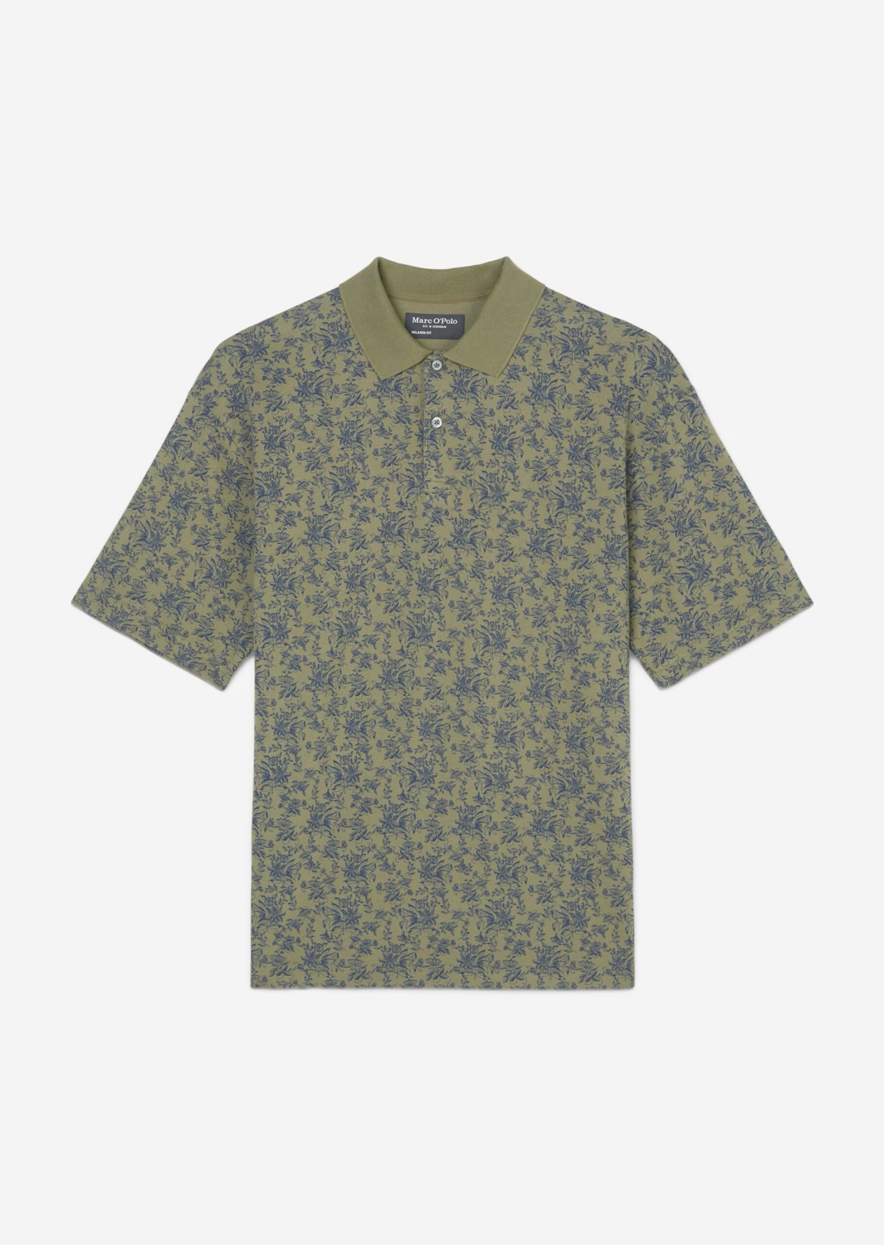 Kurzarm-Poloshirt Piqué relaxed mit floralem Allover-Print in grün