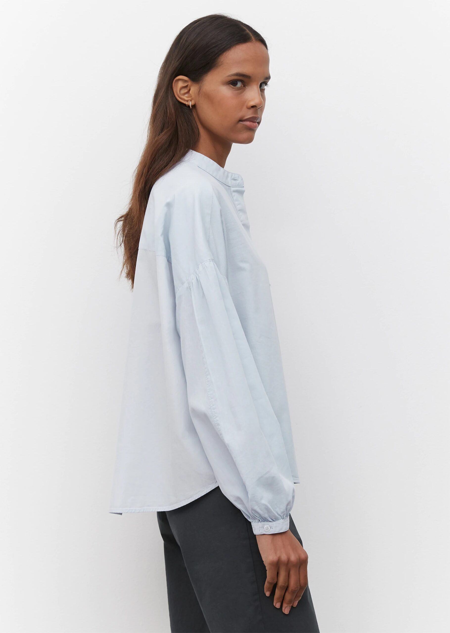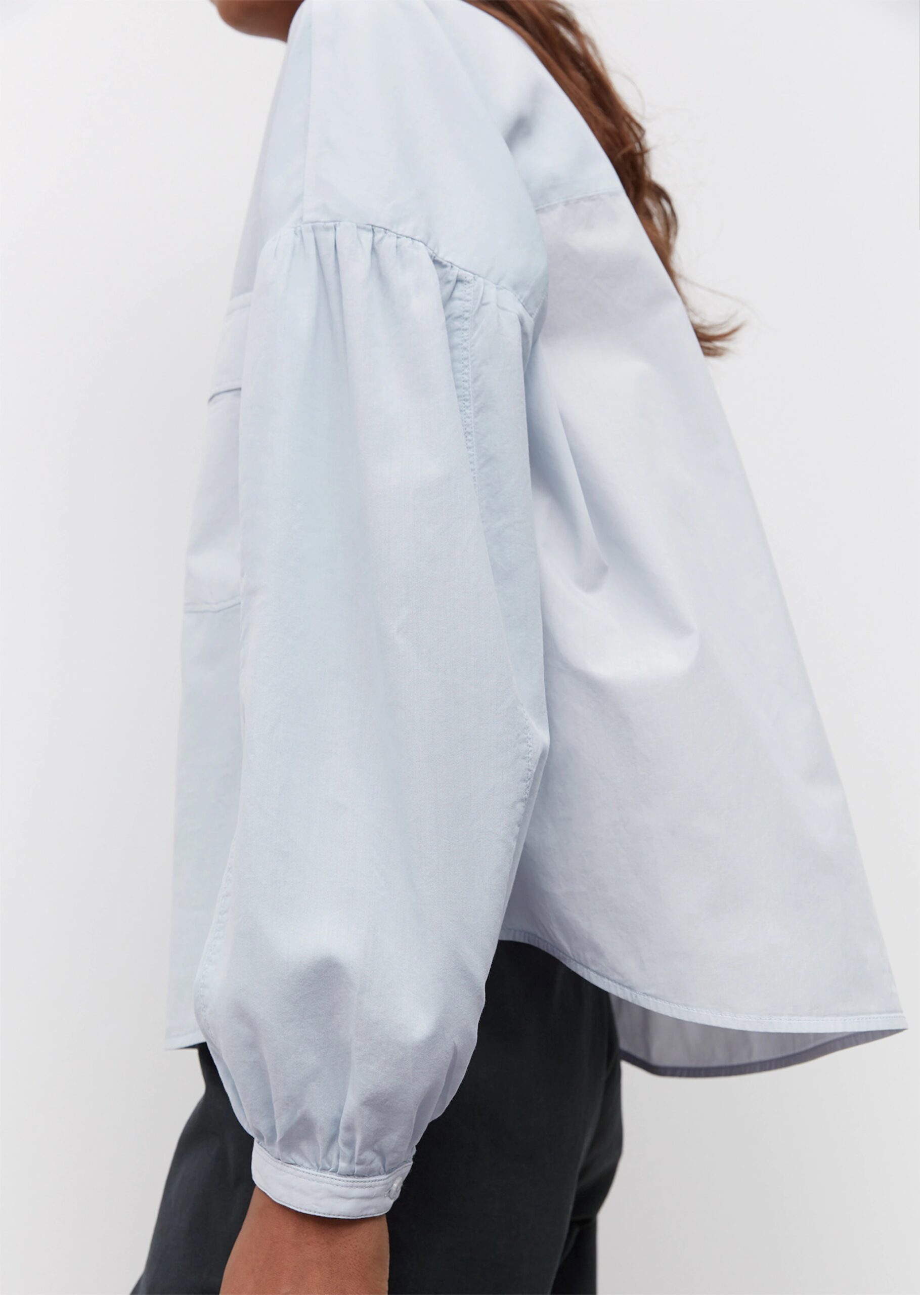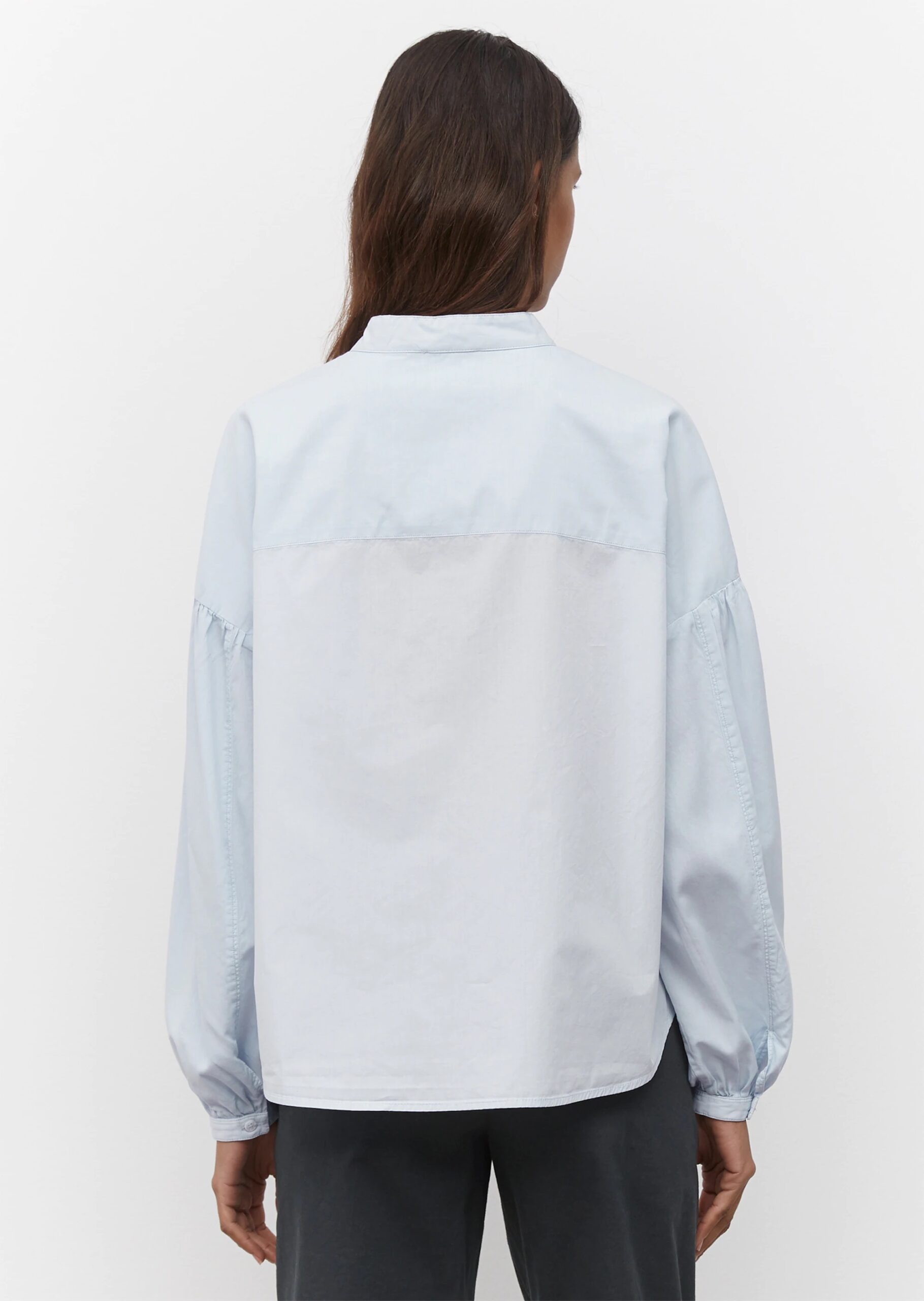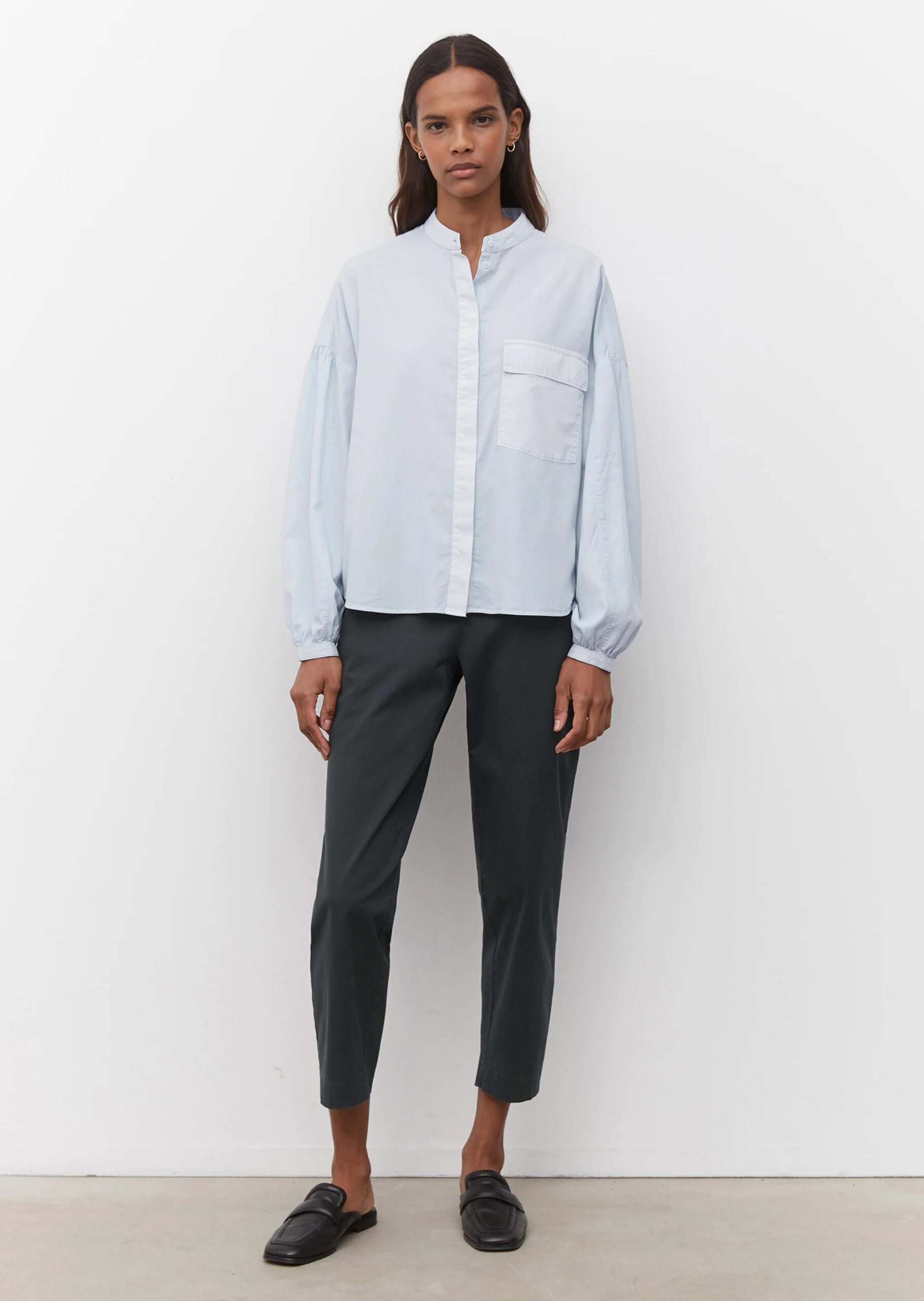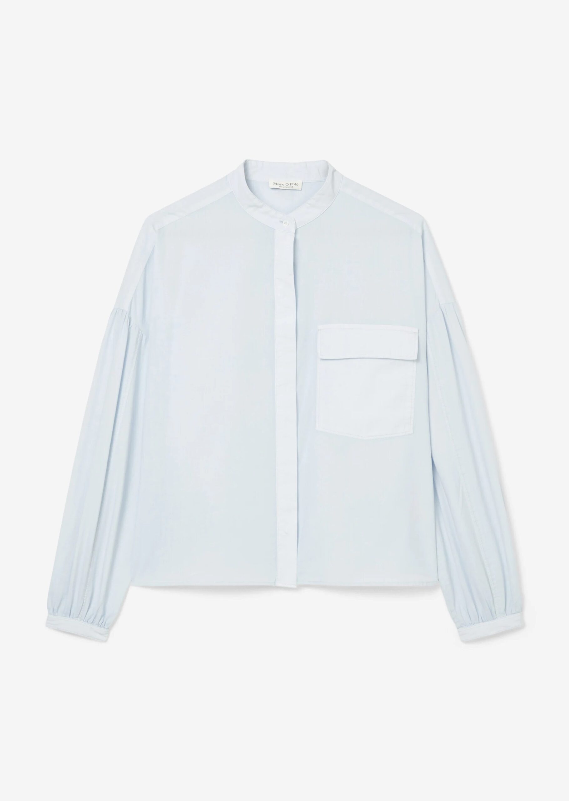 Feminines Trend-Piece: die leichte Bluse aus softem Mix aus Bio-Baumwolle und Lyocell. In zarter Twill-Qualität zeigt sich die Bluse in angenehmen Regular Fit mit kleinem Stehkragen. Mit stark überschnittenen Schultern und weiten Ärmeln, die mit einer schmalen Manschette zusammengefasst werden. Smart: die durchgehende, verdeckte Knopfleiste mit kleinem, sichtbaren Knopf in Horn-Optik am Kragen. Besonders: die gepatschten Struktur-Kontraste und die markante Klappentasche auf der Brust.