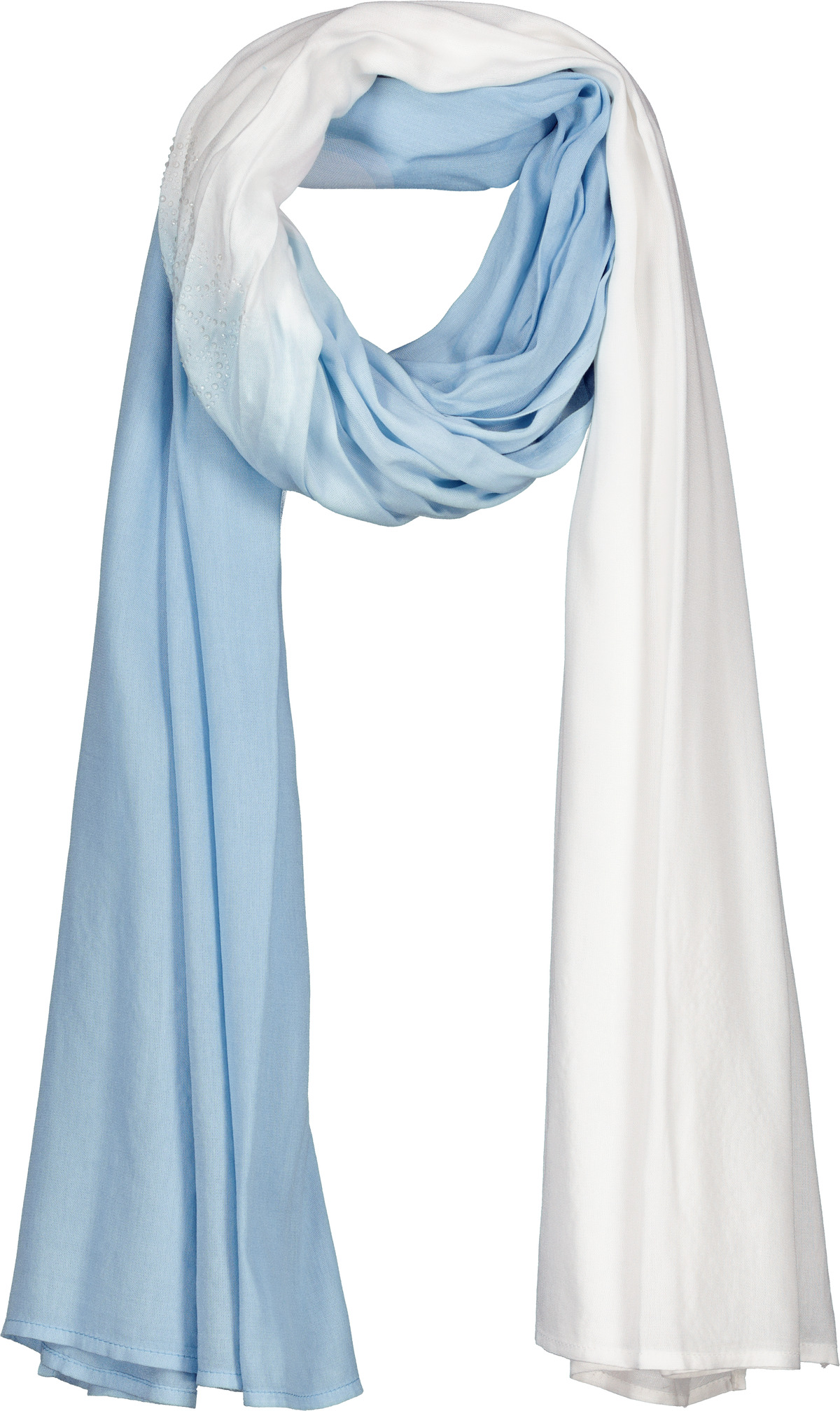 Dieser einzigartige Schal aus 100% fließender Viskose besticht durch seinen Batikverlauf und die transparenten Strasssteine.