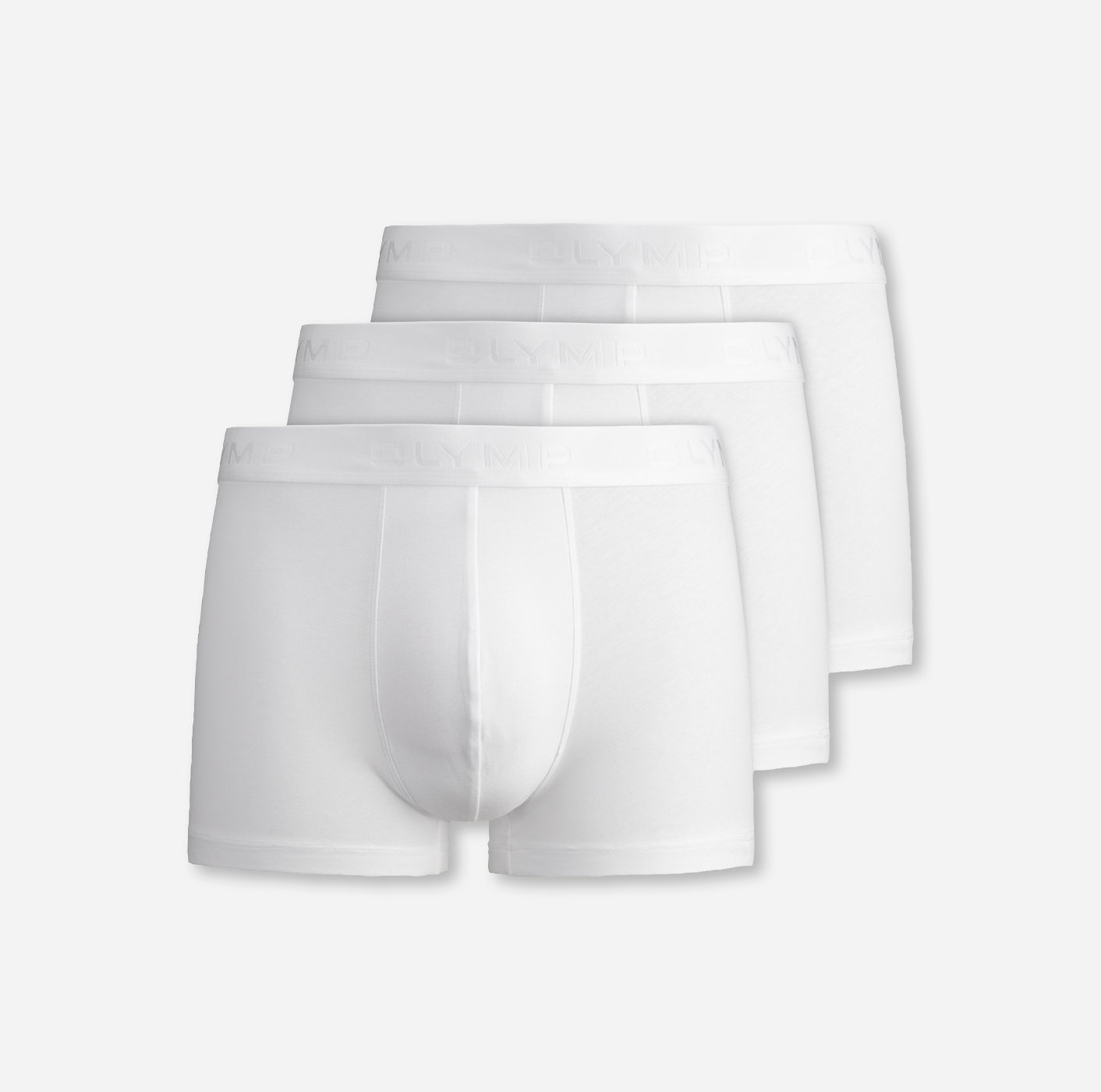 Mit den neuen OLYMP Boxershorts im Dreierpack guckt bestimmt niemand verdutzt aus der Wäsche. Die hochwertigen Retropants in anliegender Passform mit kurzem Bein und elastischem Logo-Bund verfügen über hervorragende Trage- und Pflegeeigenschaften. Obendrein überzeugen die stilvollen Unterhosen durch geschmeidigen Baumwoll-Stretch in der Farbe Weiß.