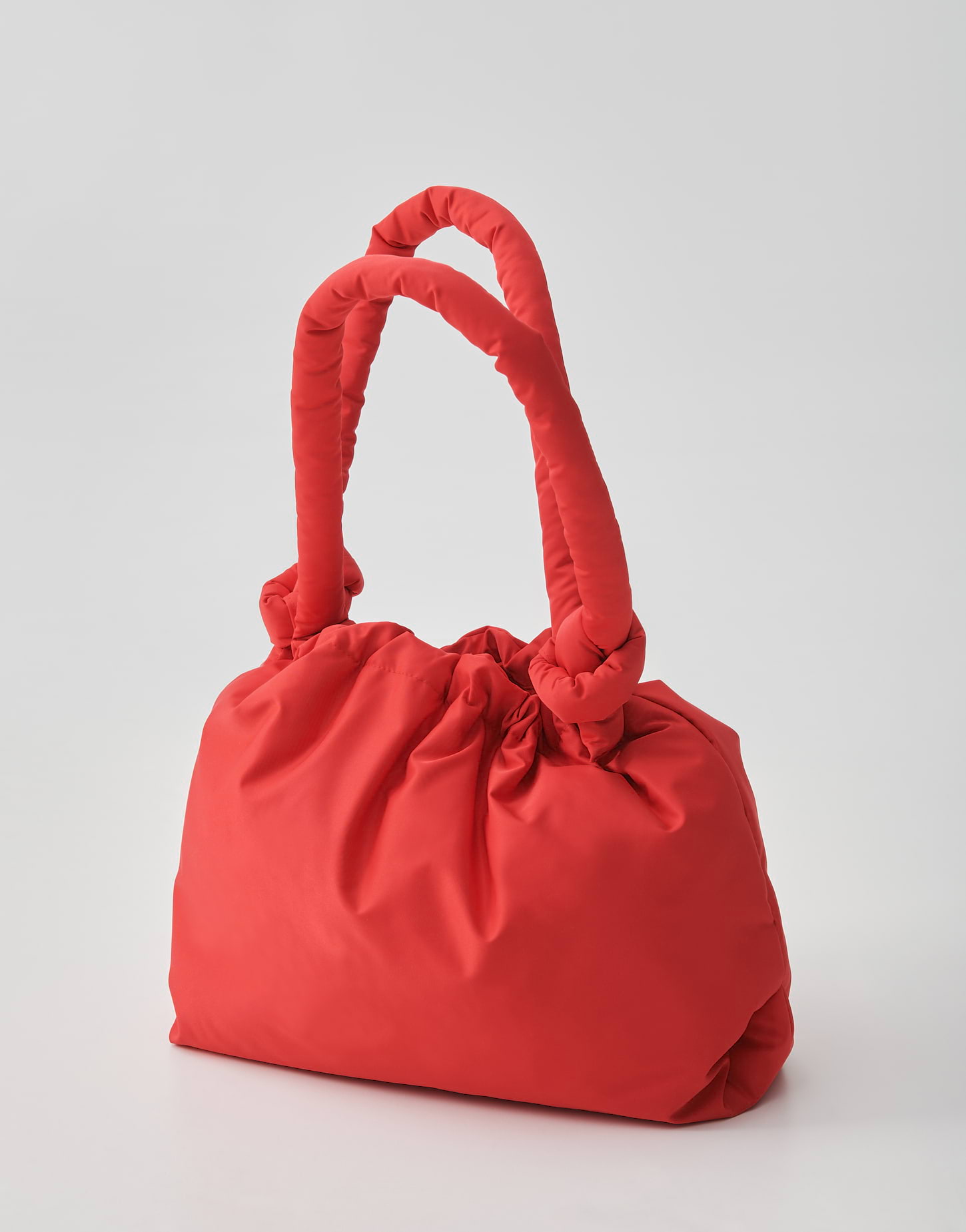 Die Beuteltasche aus Nylon bietet nicht nur ein außergewöhnlich leichtes Tragegefühl, sondern verleiht durch den subtilen Glanz in der Oberfläche jedem Outfit eine elegante Note.
