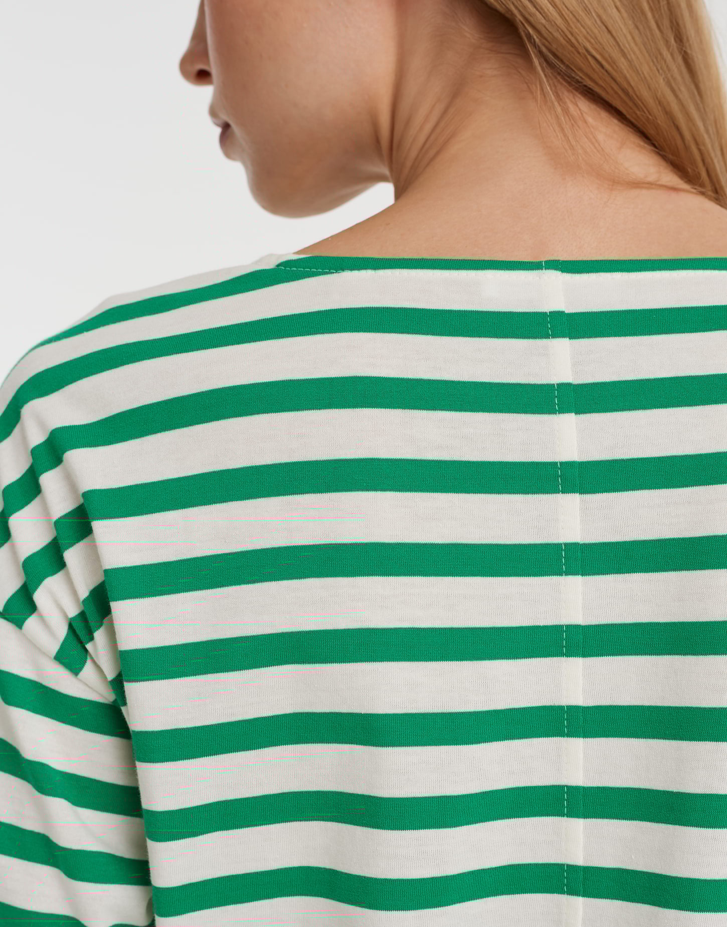 Das Streifenshirt aus hochwertigem BCI Cotton setzt auf ein klassisches Streifenmuster. Der schlichte Look wird durch raffinierte Details gebrochen wie die vorverlegte Schulternaht und die Längsnaht im Rücken.