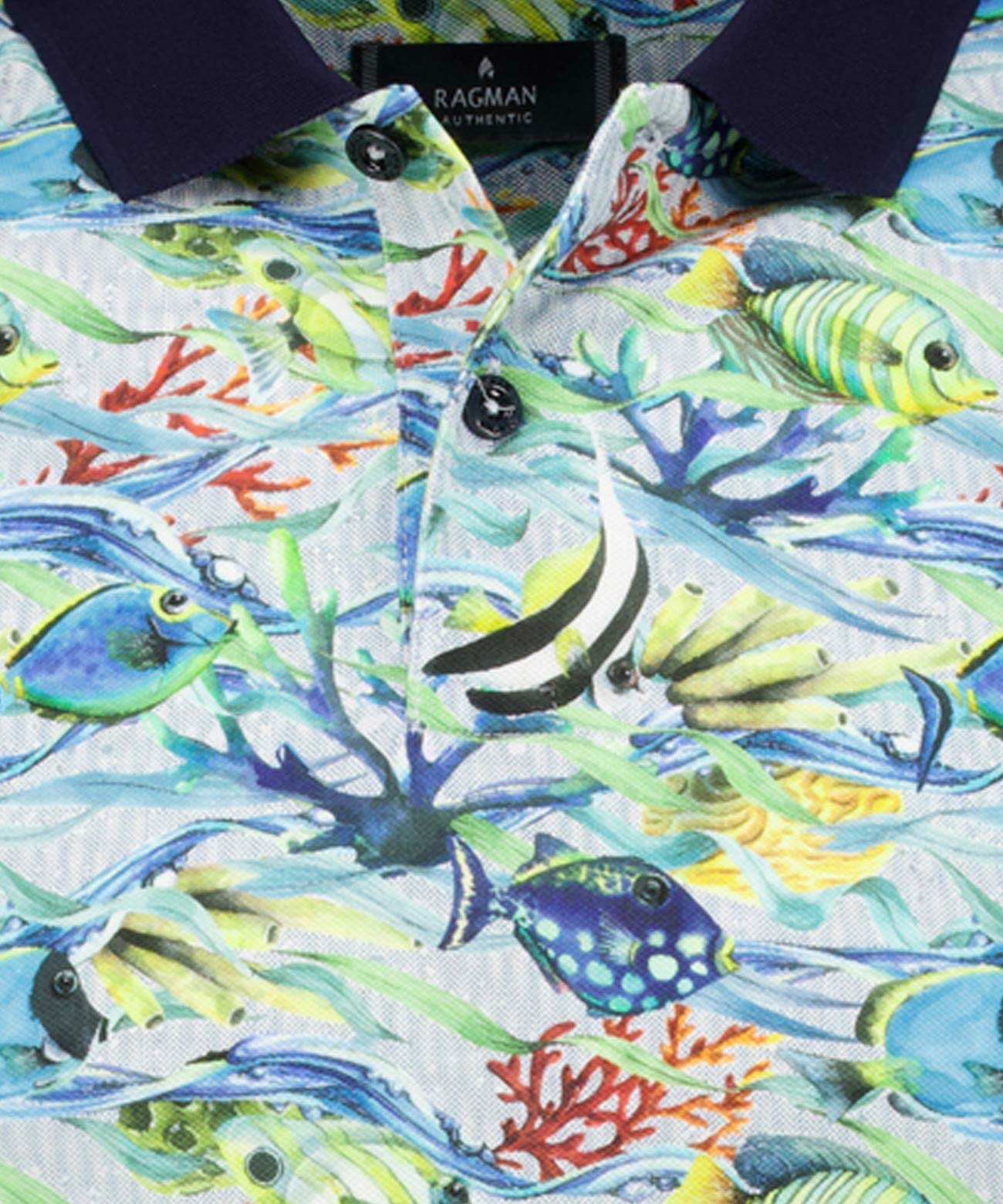 Urlaubsfeeling leicht gemacht: mit unserem Alloverprint-RAGMAN-Polo im tropischen Flower-power-Look oder dem grafischen Kunterbunt-Polo. Deshalb gehört es in jedes Reisegepäck und es freut sich bereits auf seinen Auftritt an der Coconut-Bar, am Strand oder auf dem Glasbodenboot-Abenteuer. Wieder zuhause angekommen, geniesst es sein welcome back – sehr stylish mit einer coolen Sommerchino, bei Sommerhitze mit einer modernen Bermuda oder mit elegantem Sakko sogar beim Business-Lunch. Der typische Polo Flachstrick-Kragen und die Armbündchen sind unifarben sehr passend abgesetzt und die 2-Knopfleiste ermöglicht Flexibilität bei Hitze- oder Kälteeinbruch. Hergestellt in 100% reiner Baumwolle, ist das neue RAGMAN-Polo ein Garant für angenehmen Tragekomfort.