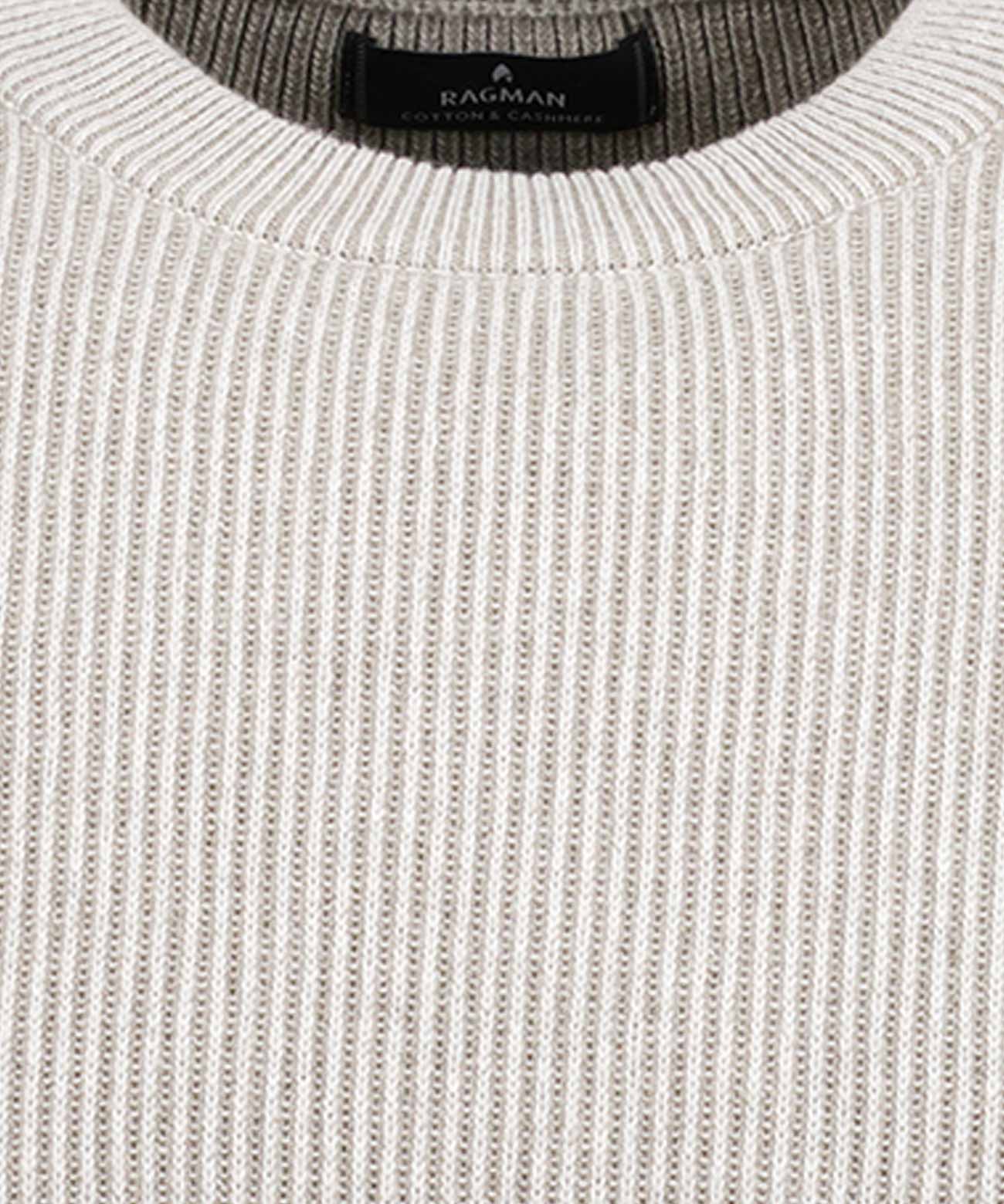 Hier gibt es gleich 3 Rivalen: zum einen der schöne Bicolour-Strick, zum zweiten der coole Rippenstrick und zum dritten die hochwertige Baumwoll-Qualität, die mit Kaschmir gespickt ist. Ein Gesamtpaket eines wunderschönen RAGMAN-Pullovers, das als solches perfekt vereint ist und einen Ehrenplatz im Männerkleiderschrank verdient. Mit modischem Rundhals und Rippenbündchen in 1×1-Rippe.