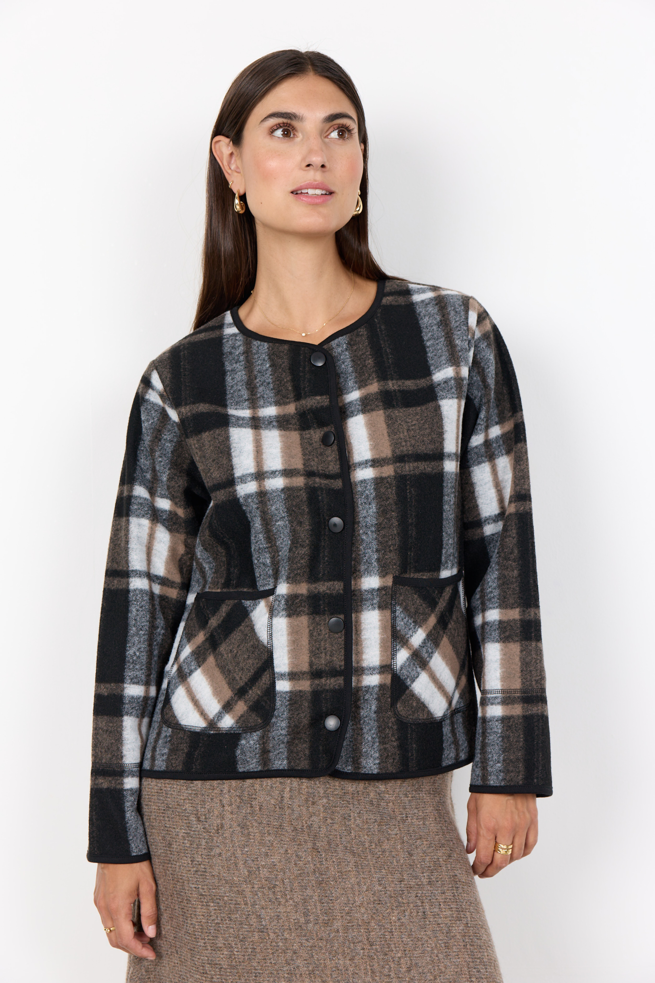 SC-VOCAL 1 stellt die Jacke aus 100% recyceltem Polyester vor. Die Jacke hat einen Rundhalsausschnitt, einen Knopfverschluss, einen Karodruck und zwei Vordertaschen. Kombiniere sie mit Jeans oder Hosen für einen cleanen und modernen Look.
