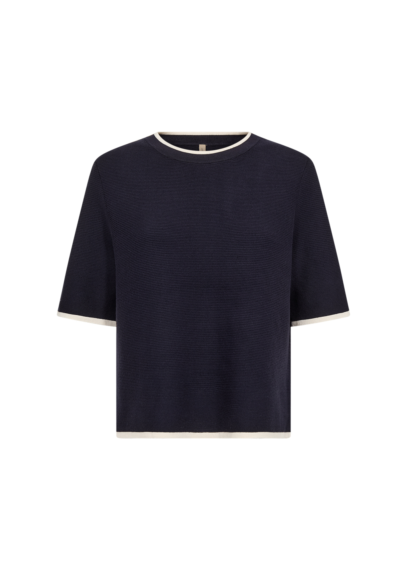 SC-DOLLIE 793 ist ein Pullover aus 75% Viskose und 25% Nylon. Der runde Halsausschnitt mit kontrastierendem Saum und die kurzen Ärmel verleihen ihm einen Hauch von Eleganz. Kombinieren Sie ihn mit einer maßgeschneiderten Hose oder einem eleganten Rock für einen eleganten Look.