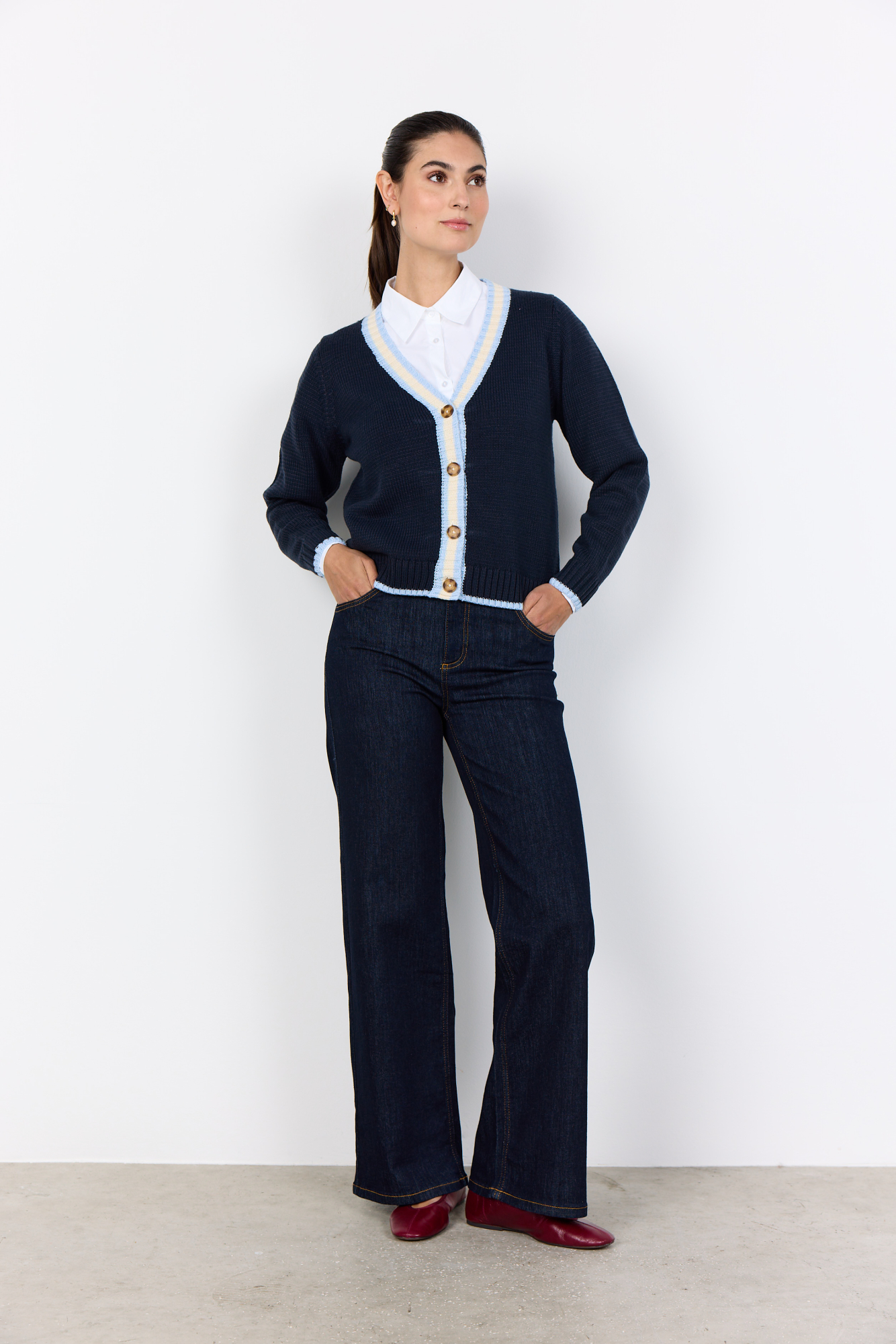 SC-REMONE 39 ist eine Strickjacke aus 60% Bio-Baumwolle und 40% Acryl. Sie hat einen V-Ausschnitt mit kontrastierenden Rippbündchen, Holzknöpfe auf der Vorderseite und ein strukturiertes Gestrick. Kombinieren Sie ihn mit Jeans für einen lässigen Look oder über einem Kleid für zusätzliche Wärme.
